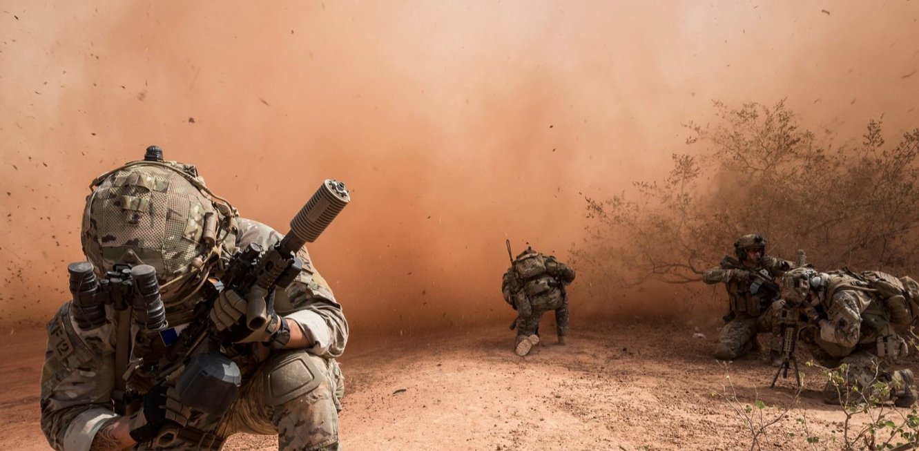 BS – Je suis avec un groupe action, un « Stick Action Spéciale », des commandos du 1er RPIMa, excellent régiment bâti dès la seconde guerre mondiale sur le modèle des SAS britanniques – des bêtes de combat, des machines de guerre. On est au Burkina Faso. L’hélico vient les chercher. Dans une demi-seconde, je vais me prendre la tempête de sable dans la gueule. Les conditions sont si violentes que l’autofocus est complètement perdu. Il faut basculer illico en manuel.